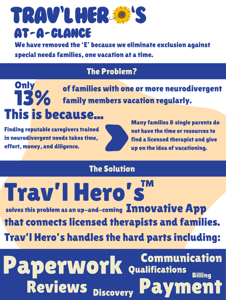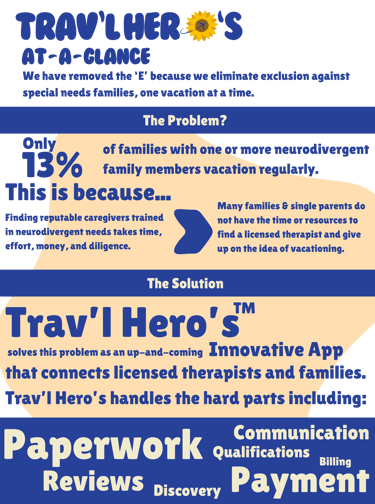 Vacations should serve as an opportunity for relaxation and bonding; however, for families with neurodivergent children, the logistics can often become overwhelming. Trav'l Heros addresses this concern by connecting families to specialized therapists who can assist with various needs abroad. This service provides not just a vacation but a tailored experience that fosters a sense of comfort and safety for every family member. With the aid of our developed branding, Trav'l Heros can communicate this vital service more effectively to reach families looking for supportive travel options.